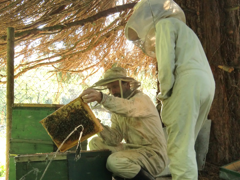 Wir sind eingetragenes Mitglied im Deutschen Imkerbund e.V. und theoretisch könnten wir ein Biosiegel auf unsere Honiggläser kleben, denn im Frohnbachtal wird kaum konventionelle Landwirtschaft betrieben und die intensiv bewirtschafteten Weinreben sind - wie bereits erwähnt - nicht von Interesse für die Honigsammlerinnen. Um ein Bio-Zertifikat zu erhaltenn, muss der Honig regelmäßig auf seine Inhaltsstoffe überprüft werden. Diese kostenintensiven Prüfungen und die zusätzlichen Gebühren für das Recht zur Werbung mit dem Bio-Siegel rentieren sich für unsere kleine Imkerei nicht. Die zusätzlichen Kosten würden sich notgedrungen in einem teureren Preis für ein Glas Honig niederschlagen.